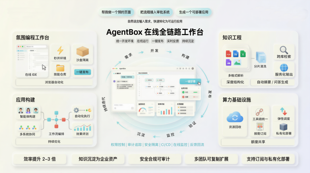 星环科技推出的AgentBox,正是面向企业打造的在线氛围编程平台,帮助企业把AI驱动的开发模式真正变成可规模化复制的组织能力: