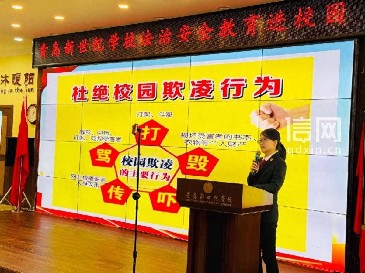 信网4月11日讯 为深入推进未成年人法治宣传教育,切实增强未成年人法律意识及自我保护能力,4月7日,市南法院云南路法庭法官助理李星受邀走进青岛新世纪学校,为全校1600余名师生送上一堂生动实用的法治教育课。